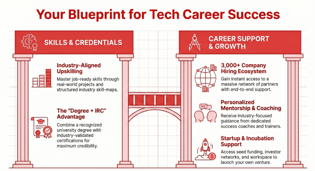 Yes — while NIAT’s upskilling training program with the collaborated Universities focuses on skill-building, students also participate in peer-led clubs, tech communities, and national-level challenges, which foster communication, leadership, and collaboration.