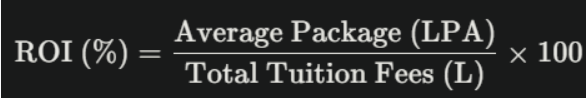 | College Names | Total Fees | Average Placement Package (INR LPA) | ROI (%) |