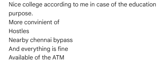 - “College is superb and good liberay to study and hostal very nice it’s pleasent to study environmental. good teacher they teach in simplyway to study.i complete my studies. i get good knowledge and i get job in Dr reddys. Its nice college to study.”