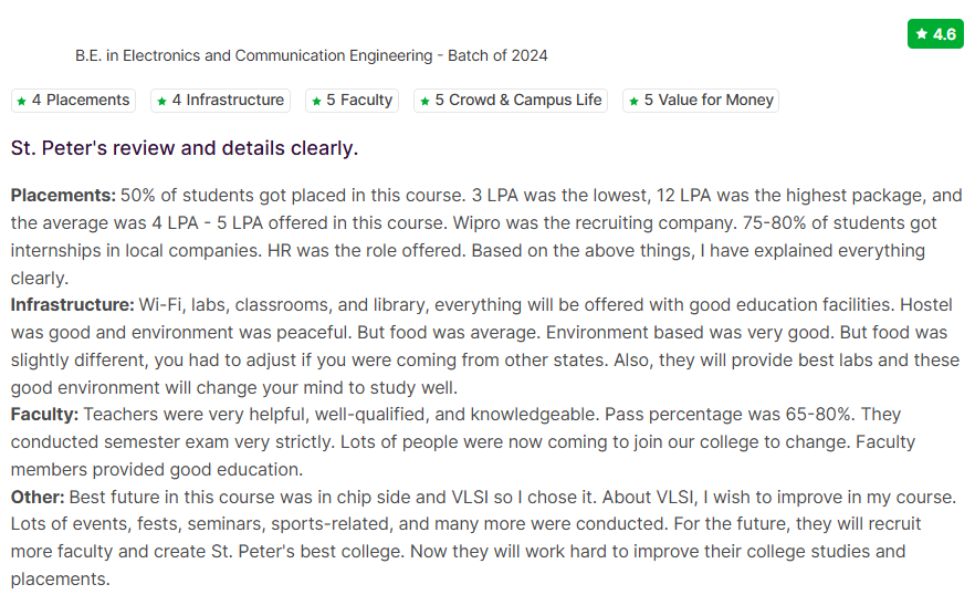 What Students Are Saying About St. Peter’s Institute of Higher Education and Research?